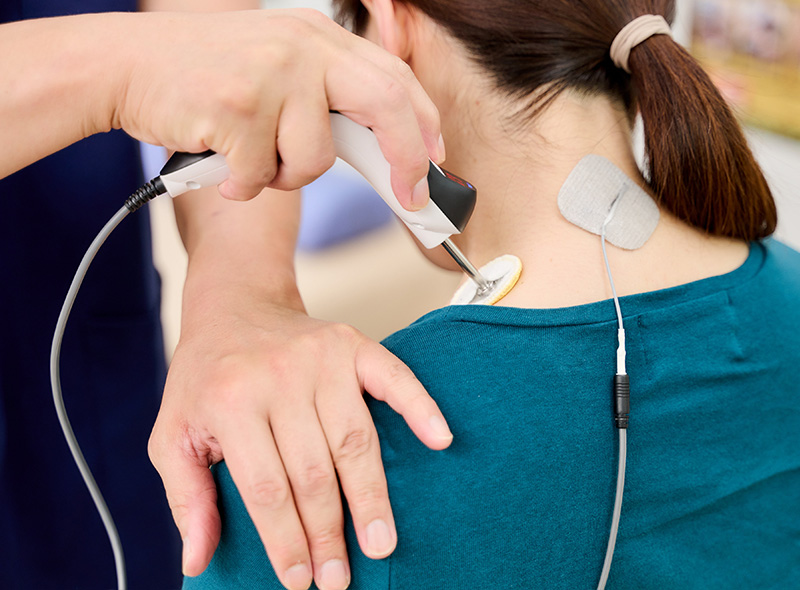 他の電気治療に比べ、身体の奥深い患部へのアプローチが出来るため、とても即効性が高く、変化をその場で体感しやすいのが特徴です。何年経っても痛みが取れなかったり、痺れが残ったりしていた方や、ぎっくり腰や急な肩、首の痛みが出た方など、皆様、驚かれることが多い治療法です。