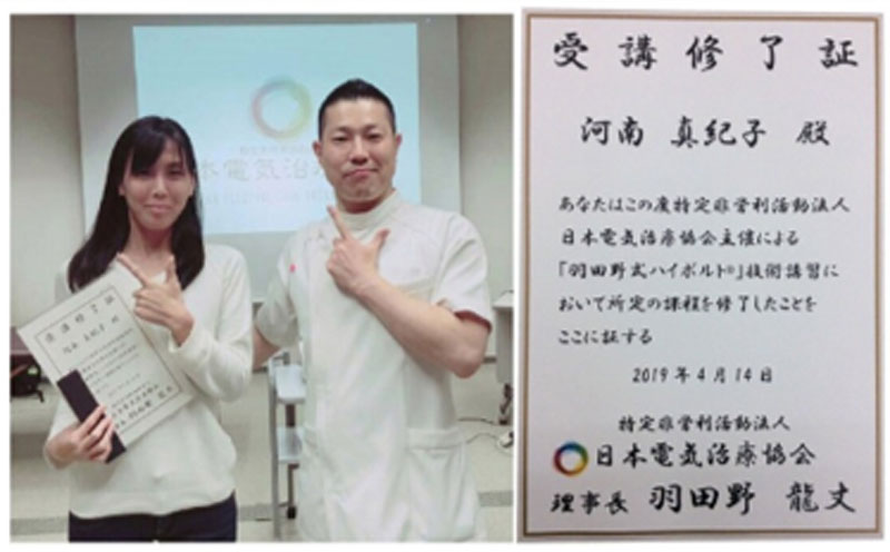 この羽田野式ハイボルテージ療法を受けられるのは、研修を受けた者にのみ与えられる『認定書』がある院だけです。
