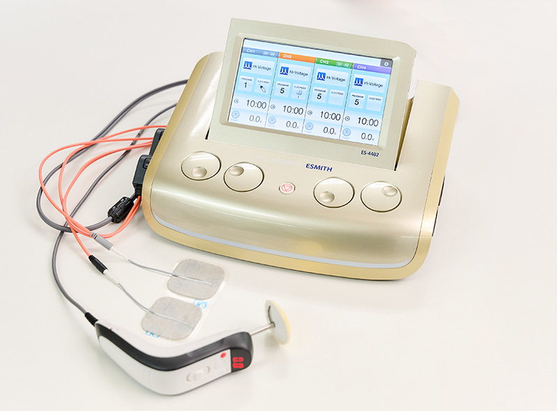 小島鍼灸整骨院のハイボルテージ療法は、医療業界で高い信頼を得ている伊藤超短波製の機器を使用し、瞬間的な高電圧を断続的に流すことにより、火傷をしない、安全で高い治療効果を実現しています。