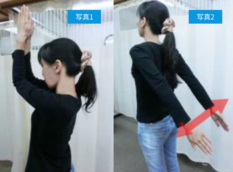 - 両腕を上げた時に耳よりも後ろ側に二の腕がいかない