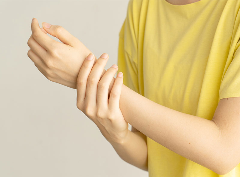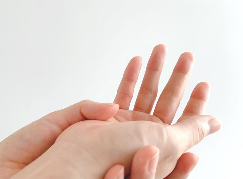 - 手首を動かすと手の甲の部分や親指から手首のあたりに痛みが出る